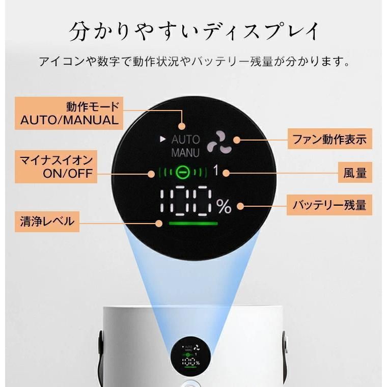 空気清浄機 ポータブル 小型 HEPAほこりセンサー 3段階風量 充電式 USB コンパクト 卓上 30畳 タイマー PM 2 5 ほこり 花粉対策