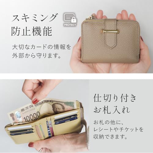 【牛本革をふんだんに使った 永く愛せる二つ折り財布】女性の手にすっと収まる絶妙なサイズ感と使いやすさ。 外側だけでなく内側にも贅沢に牛本革を使用することで 開いた時の華やかさ、しっとりなじむ手触りを実現しました。キラッと光るフロントの金具のデザインやファスナー、 毎日使うからこそこだわりを詰め込みました。牛本革バイカラー 小さいのに大容量 ガバッと開く小銭入れ 仕切り付きお札入れ スキミング防止 オリジナルBOX付き