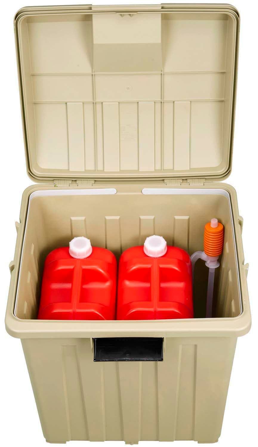 サイズ(1個当り):幅49×奥行41.5×高さ62cm、本体の実質容量(1個当り):76L(適合ポリ袋は70-90L)、重量(1個当り):2.05kg、材質:ポリプロピレン、入数:2個(カーキベージュ1個、カーキグリーン1個)、生産国:日本