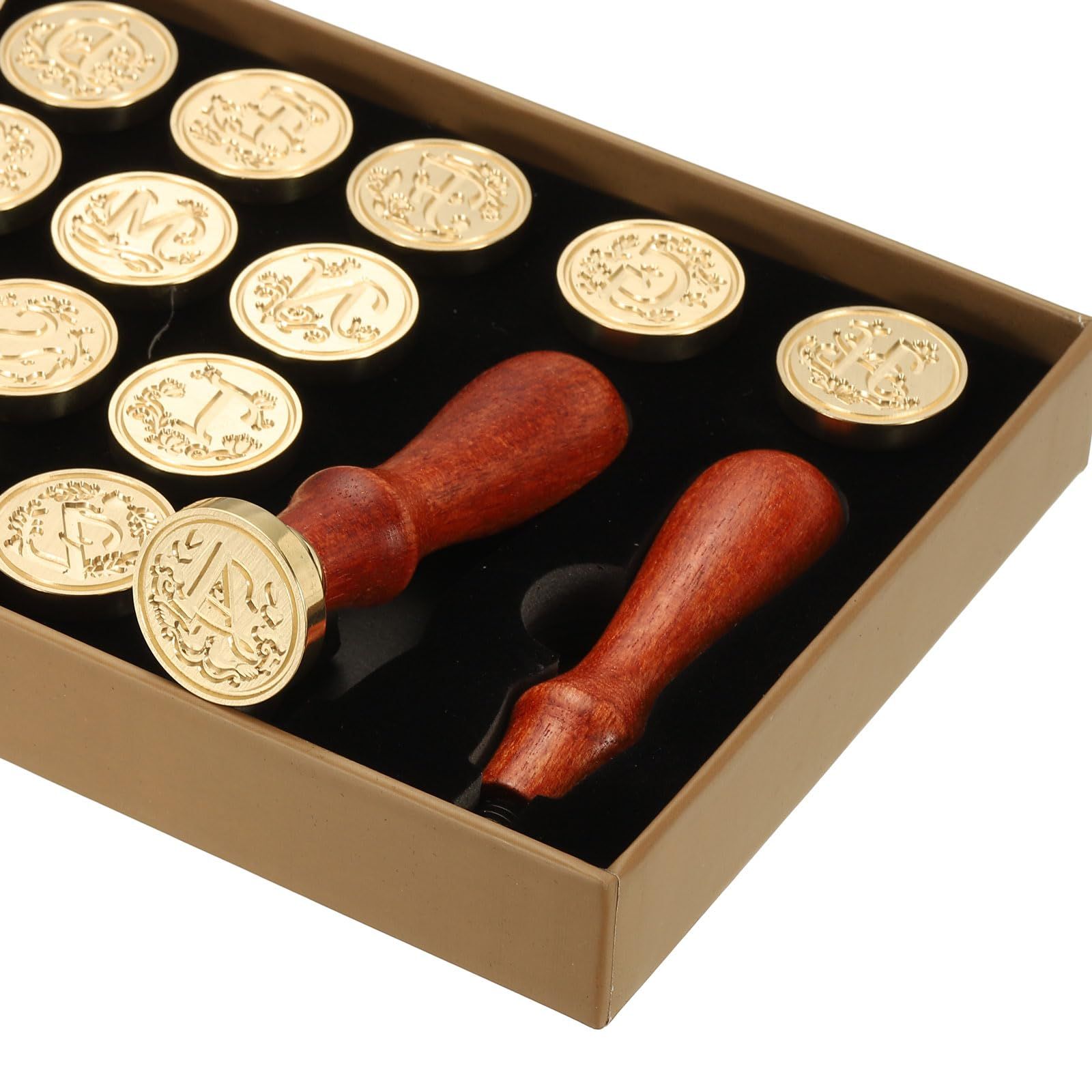 PATIKIL 26文字A Zアルファベットワックスシールスタンプキット 木製ハンドル付きギフトボックス付き ビンテージ封印スタンプ 結婚式 招待状 パーティー ギフト包装 封筒カード用 スタイル4