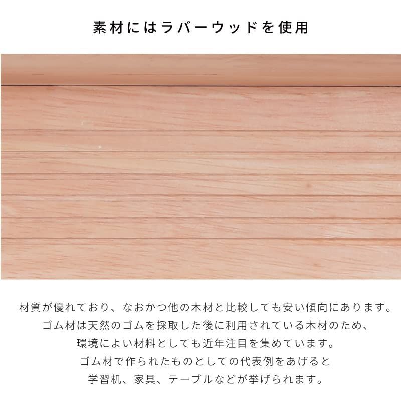 素材にはラバーウッドを使用材質が優れており、なおかつ他の木材と比較しても安い傾向にあります。 ゴム材は天然のゴムを採取した後に利用されている木材のため、 環境によい材料としても近年注目を集めています。 ゴム材で作られたものとしての代表例をあげると 学習机、家具、テーブルなどが挙げられます。