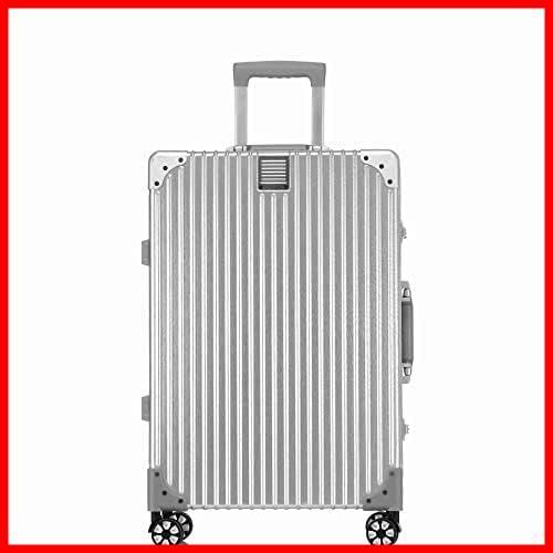 出張 tsaロック付 ビジネス 旅行 保護カバー付き シルバー 耐衝撃 静音ダブルキャスター 軽量キャリーバッグ XXLサイズ 大型トロリーケース 預け入れスーツケース 7泊 10泊 ケース機内持ち込み キャリー アルミフレーム 100 L 銀色系ボ
