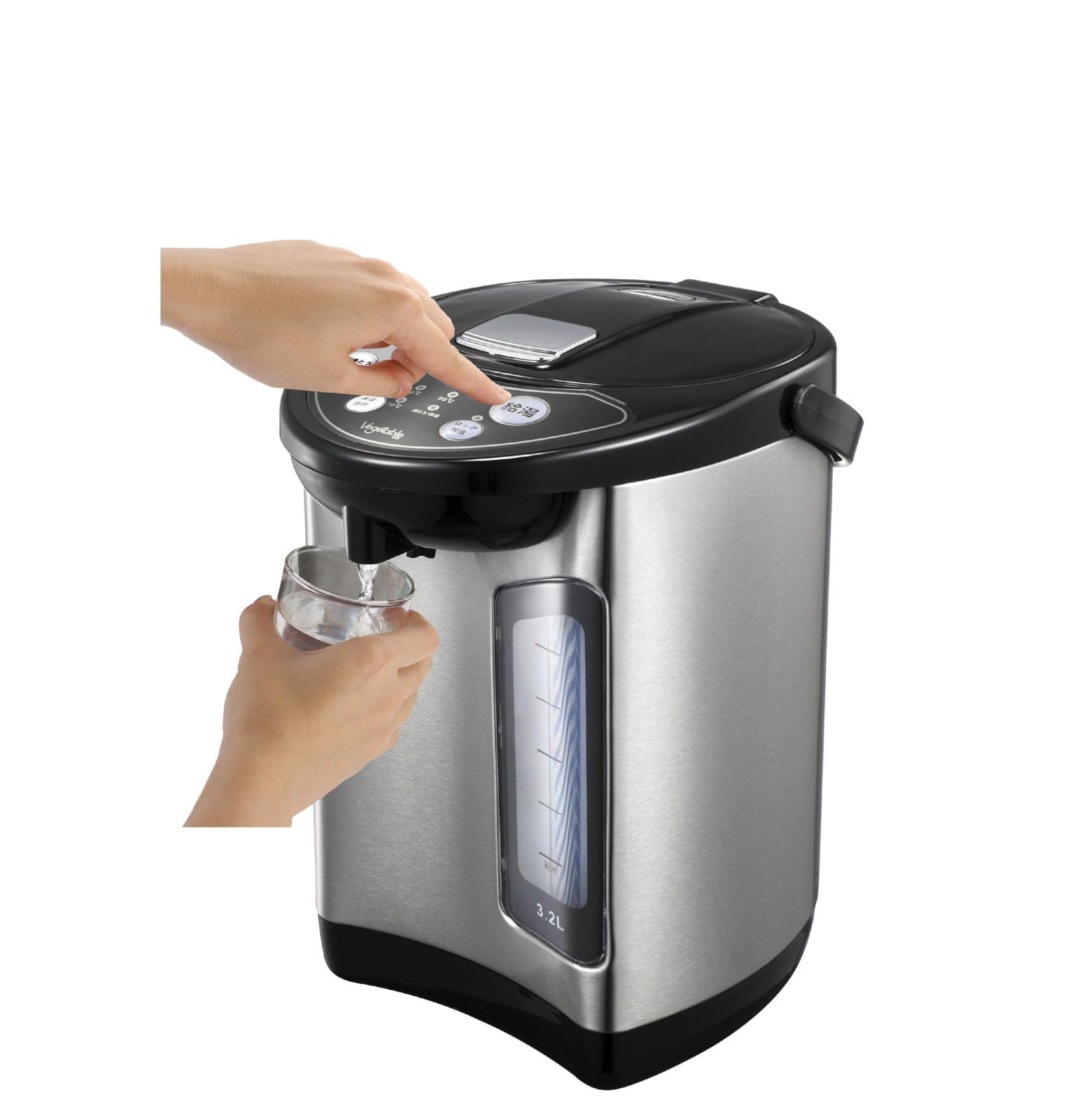 ブラック シルバー 電動給湯ポット 空焚き防止 360度回転底 安心 安全構造 シンプル操作の2 WAY給湯 3段階温度設定 GD UP 320 K 省エネ 3 2 L 容量 電気ポット Vegetable