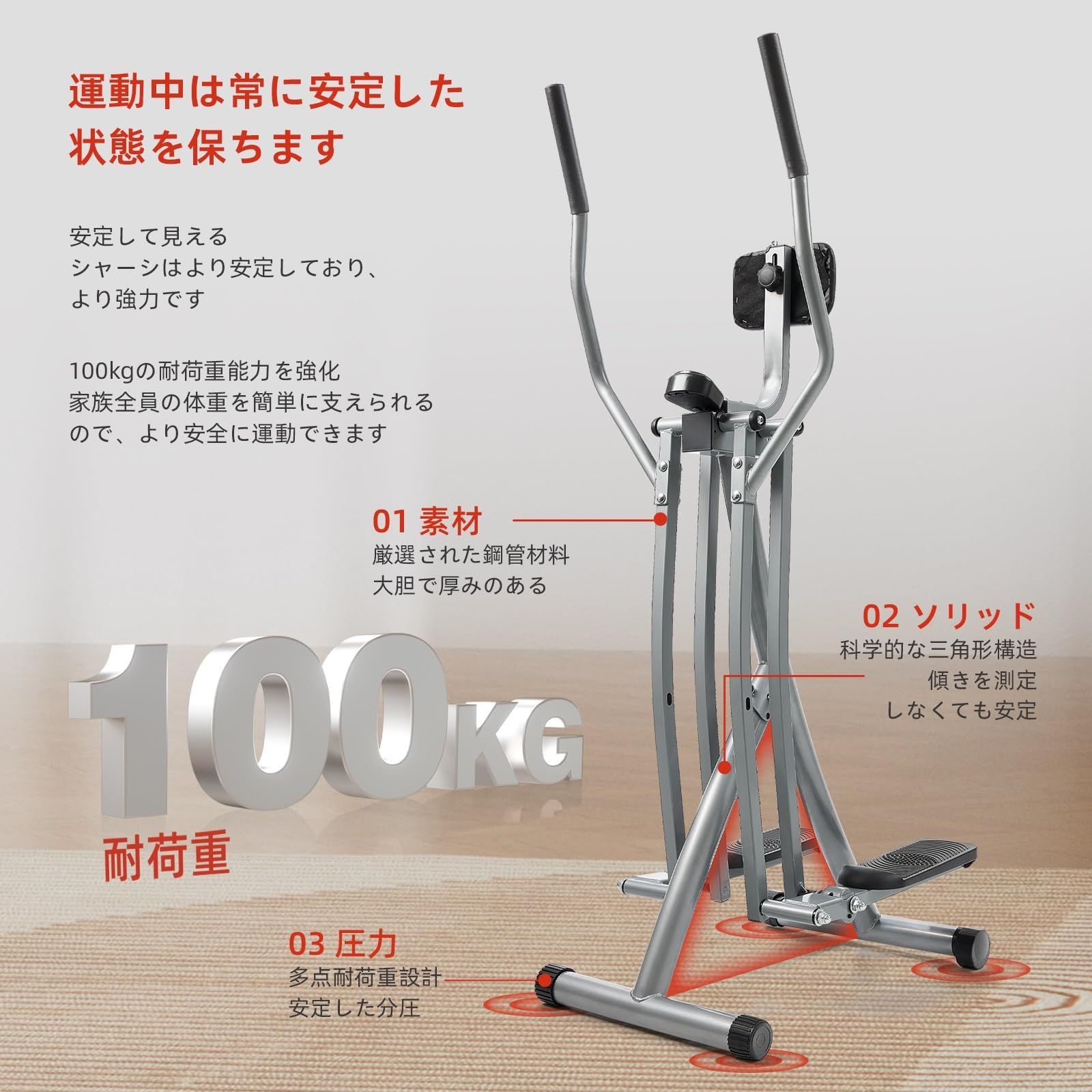 スペースウォーク・トレーナー:スペースウォークマシンでは、腕だけでなく脚の筋肉も鍛えられます。 機械の上で直立姿勢を保つと、腹筋が安定筋として働き、安定性と忍耐力が強くなります。