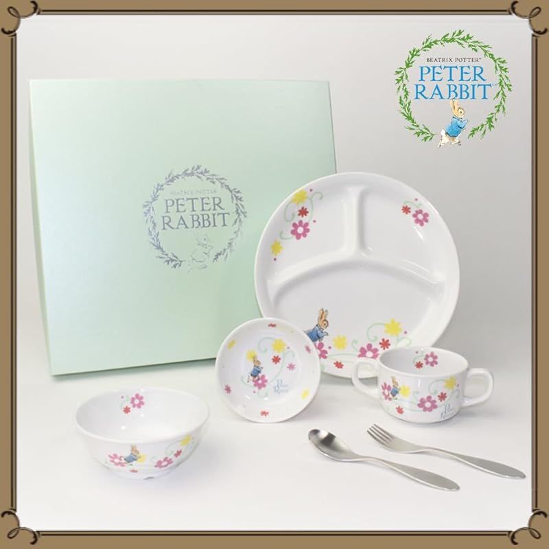 商品名:OGISO(おぎそ) ピーターラビット フルール 強化磁器食器4点&スプーンフォークセット (食洗機対応)