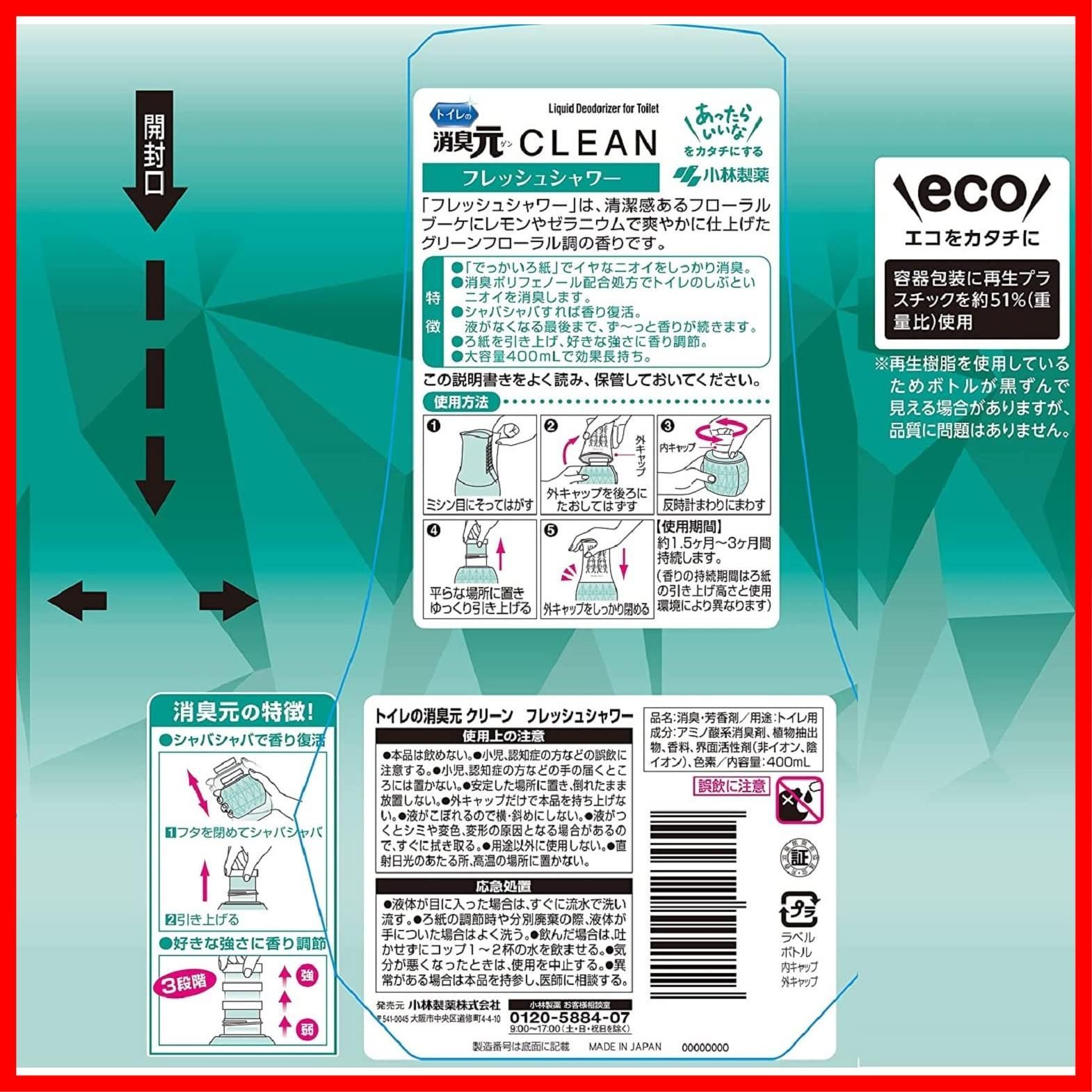 置き型 トイレ用 消臭芳香剤 400 ml フレッシュシャワー クリーン トイレの消臭元
