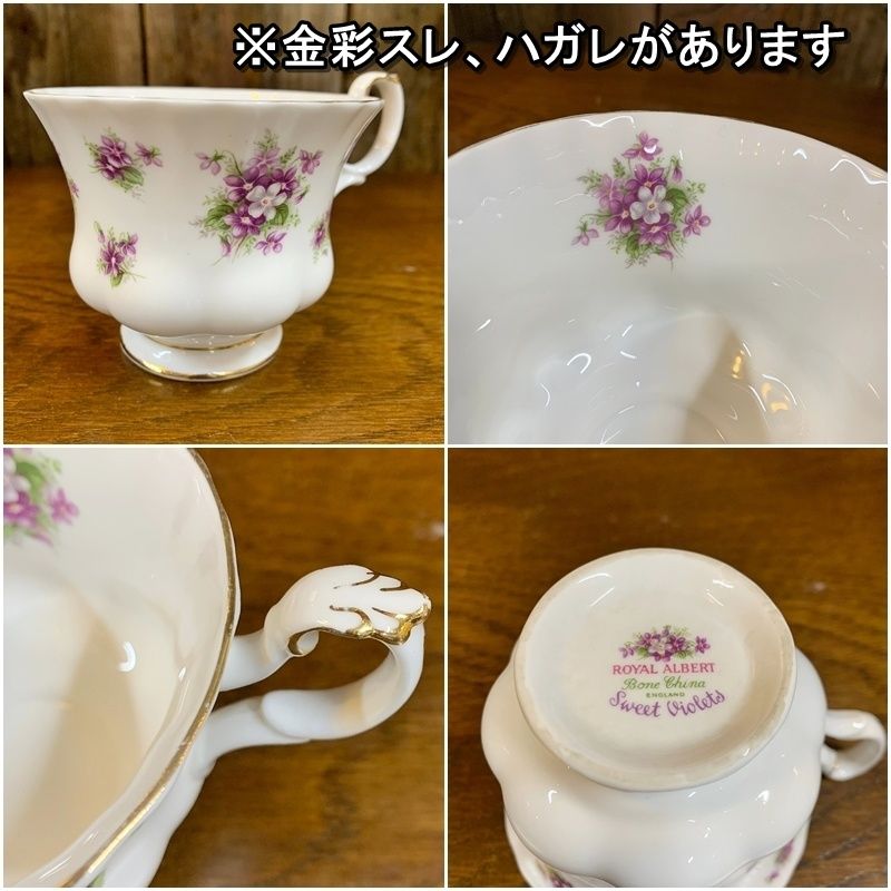 廃盤 ロイヤルアルバート スイートバイオレット ティーウェアセット 3点セット カップ&ソーサー 1客 オープンシュガー クリーマー ROYAL ALBERT 金彩 スイート ヴァイオレット 花柄 オシャレ RU 0421 9
