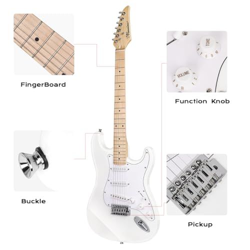 Bullfighter 初心者向けエレキギターセット 男の子 女の子 学生 大人向けのユニバーサルモデル プロフェッショナルなエントリーレベルの電子ギター楽器 ST Electric Guitar MS 100 SSS white po 4 d 52 a 74 b