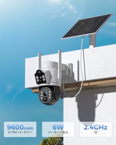 迅速に発送 ダブルカメラ Ctronics 防犯カメラ 屋外 ソーラー 6 Wソーラーパネル 9600 mAh 電源不要 配線不要 30 mナイトカラー スマホ PC対応 声光威嚇 FTP対応 人体検知+PIR 警報通知 5 DBi高性能アンテナ 93 bf f 13