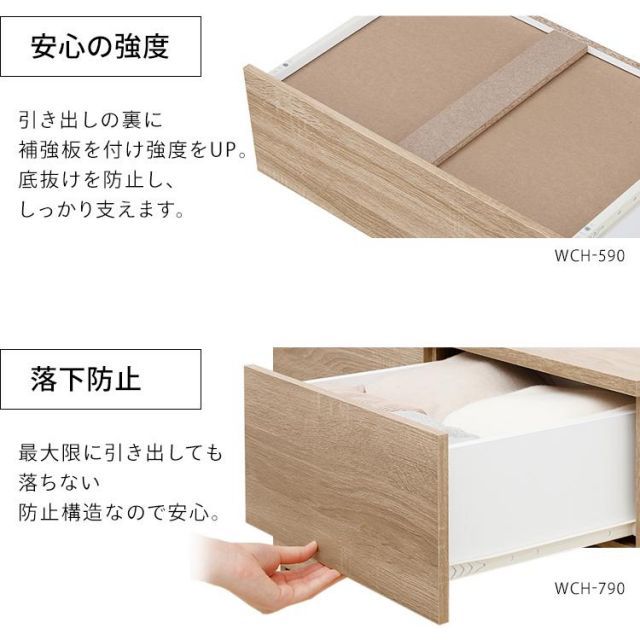 ・安心の強度:引き出し裏に補強板を設置。底抜けを防止してしっかり支えます。