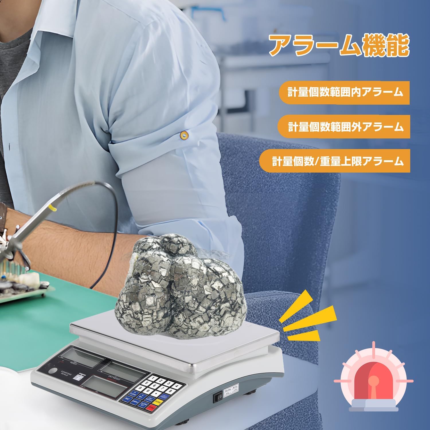 上限と下限アラーム:このデジタルカウントスケールには、風袋引き、計量、積算、上限/下限アラーム設定などの複数の機能があり、時間を大幅に節約して効率を向上させることができます。