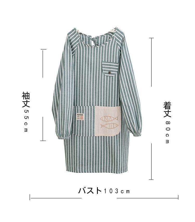 割烹着 かわいい おしゃれ かっぽう着 エプロン スモック 大人 保育士 長袖 防水 防汚 袖付き シンプル ストライプ ポケット 料理 キッチン fengxz 184