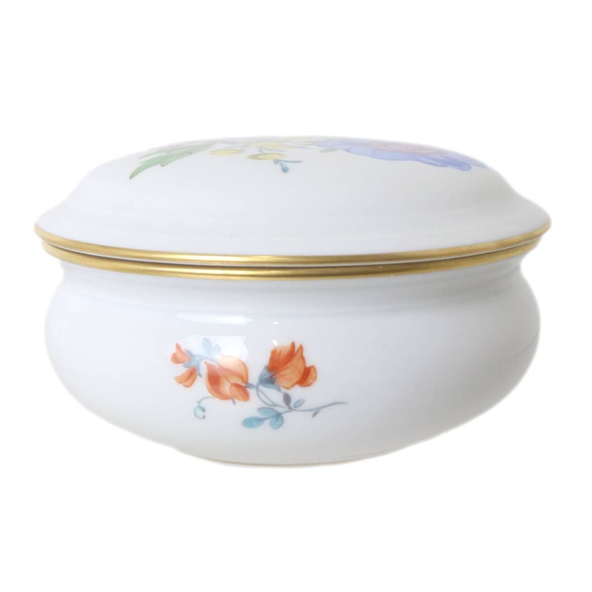 MEISSEN マイセン ボンボニエール 小物入れ フラワー×金彩 箱 胴径9×胴高4(cm) ※蓋含めず NT 美品 Aランク