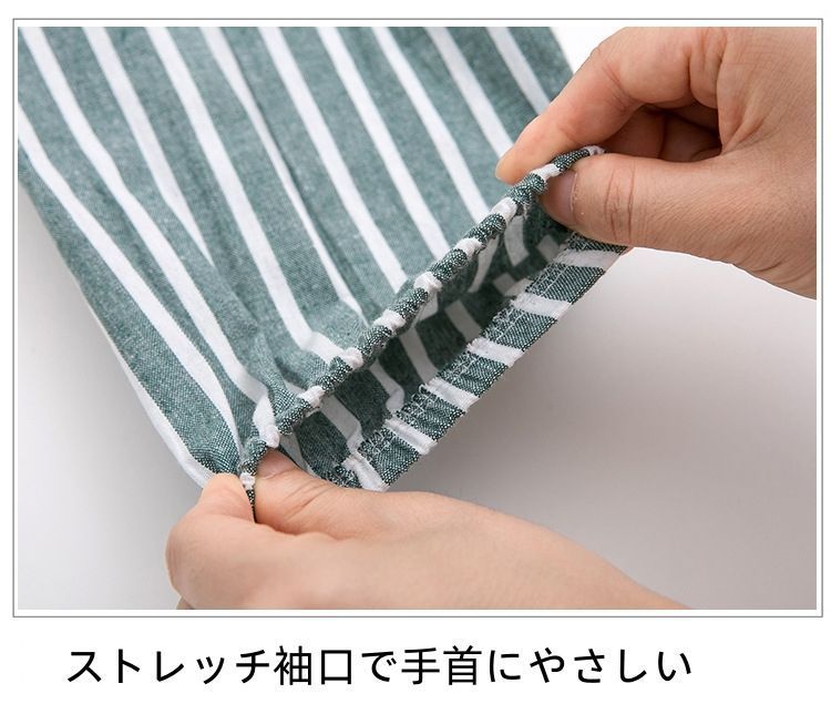 割烹着 かわいい おしゃれ かっぽう着 エプロン スモック 大人 保育士 長袖 防水 防汚 袖付き シンプル ストライプ ポケット 料理 キッチン fengxz 184