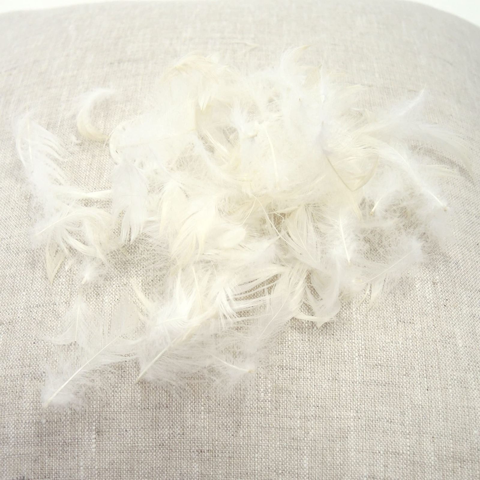 水鳥の羽根(フェザー)をたっぷり詰めています。ポリエステルわたと違い、弾力性はあまりませんが、ゆったりみをあずけられるようにお使いいただくと、フェザーならではのしっとりと沈み込む感覚を体感いただけます。※こちらの商品は圧縮した状態で発送いたします。