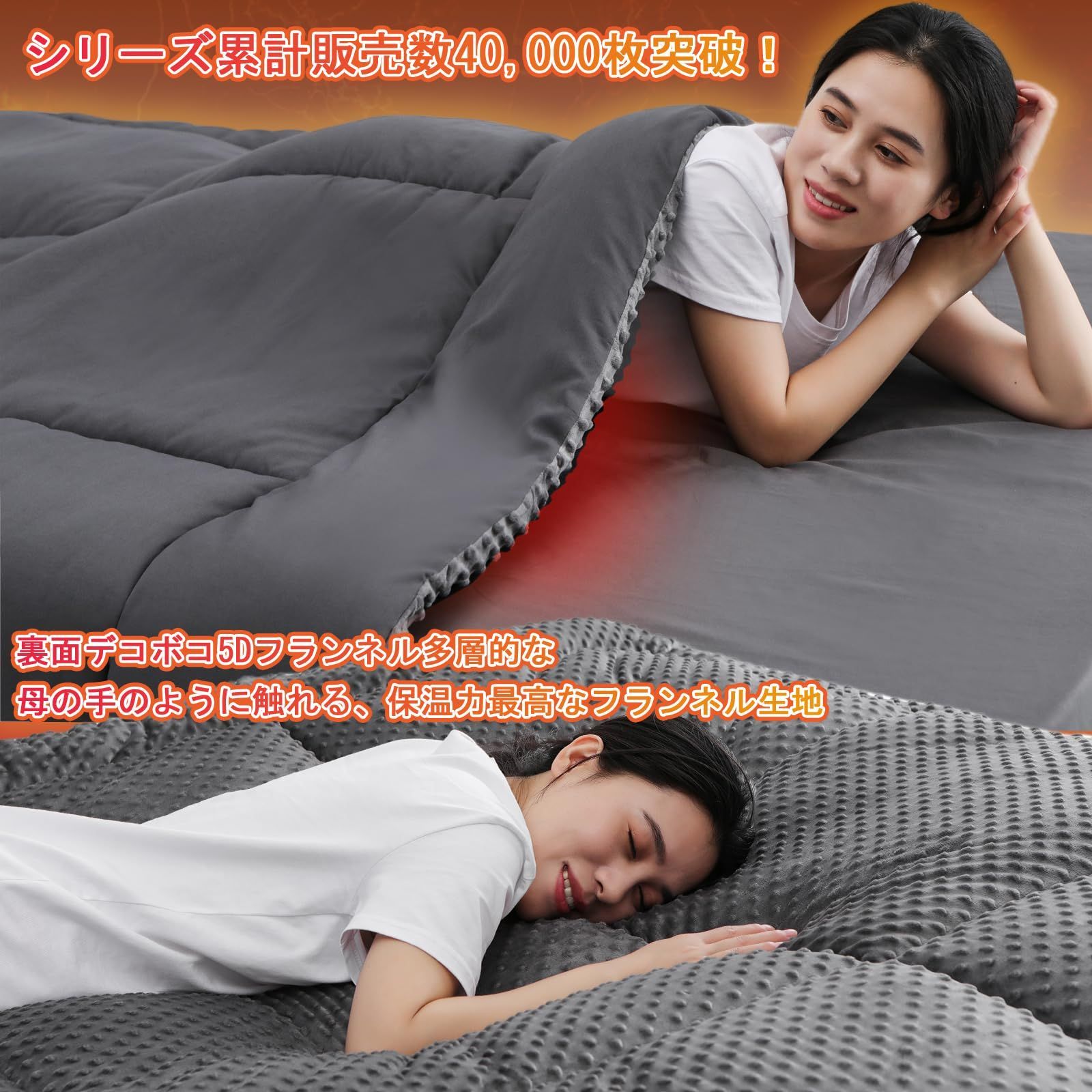 【リバーシブルデザインで2つの肌触り】A面は暖かい5Dミンキードットフランネル、B面はピーチスキン生地(軽い起毛)。A面はしっかり保温し、寒い季節に最適。B面は桃のように優しく、まるで雲に包まれるような心地よさがあります。温度調節ができるので、冬の寒さでも快適に過ごせます。