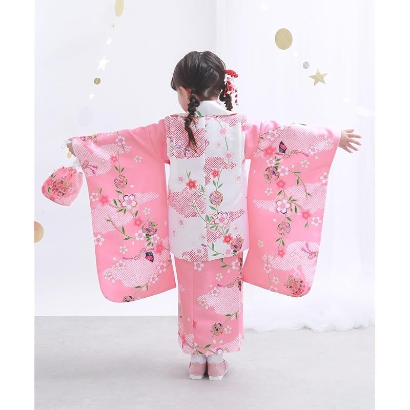 KYOETSU キョウエツ 自宅で簡単着付け 七五三 3歳 女の子 着物 セパレート 二部式 セット 被布 小物 フルセット 753 4点セット 3 桃色桜鞠 90 100 cm 1