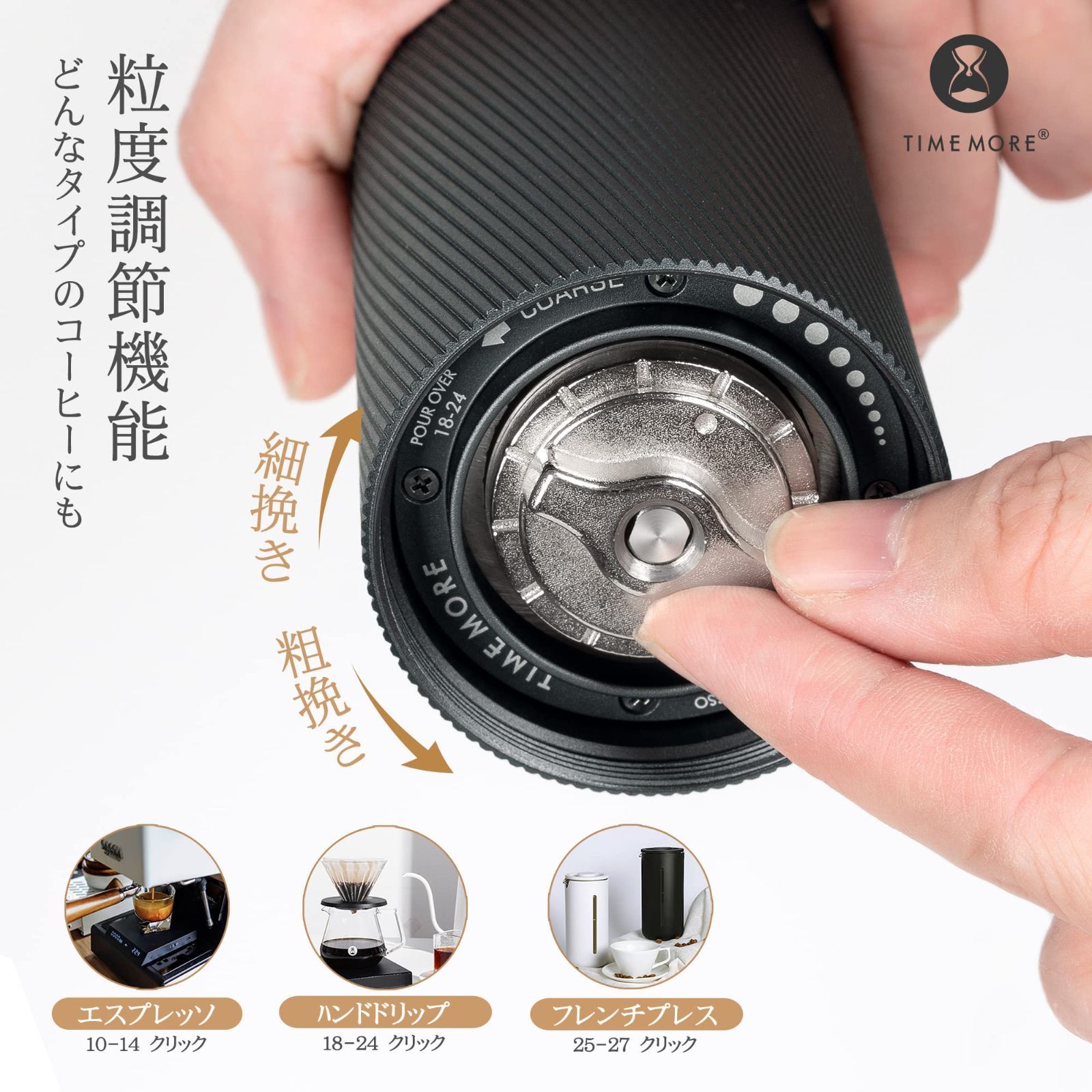 TIMEMOREタイムモア - C2 FOLD コーヒーミル 手動 折り畳み式ハンドル 持ち運びやすい 手挽き コーヒーグラインダー ステンレス臼 粗さ調整可能 軽量 外出用 旅行 お手入れ簡単 ブラシ付き 濃い灰色
