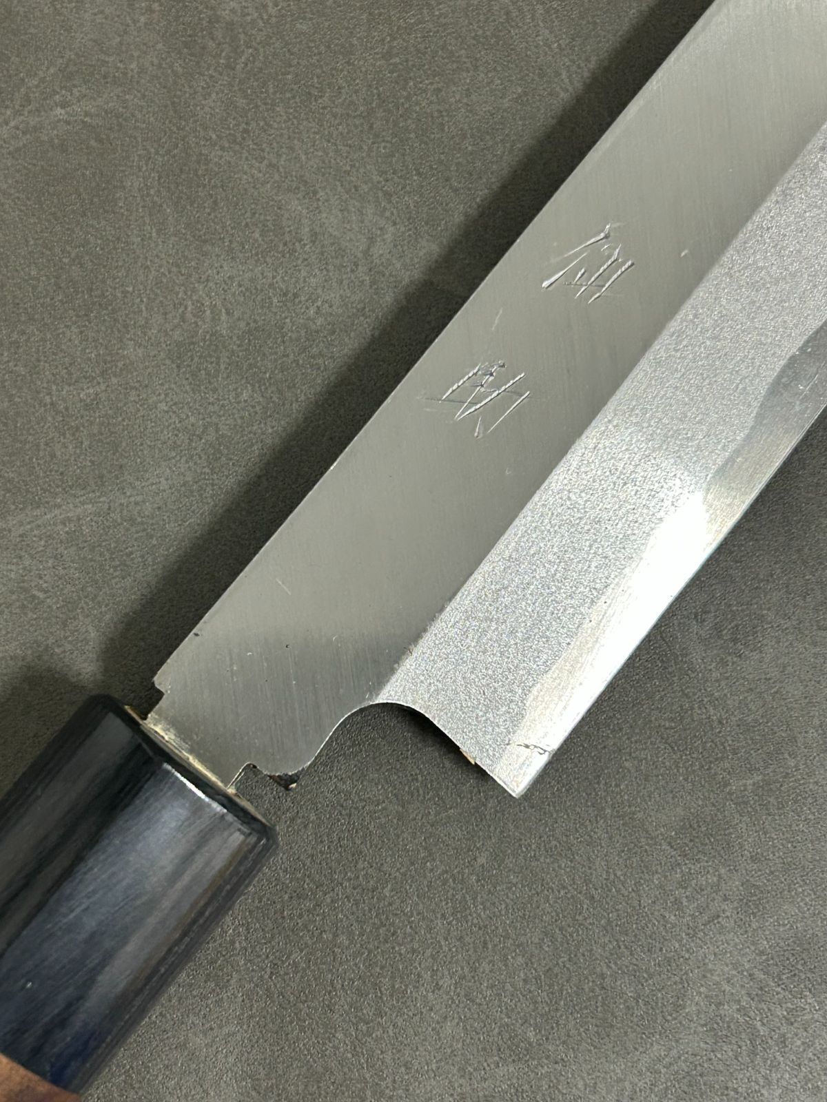 訳あり 仙助 包丁 刺身包丁 柳刃包丁 安来鋼青紙2号 270 mm 紫檀シノギ柄 19