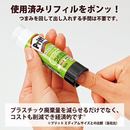 エコロジー&エコノミープリットつめかえタイプ。本体をくり返し使えて、エコロジー&エコノミー。植物由来成分を86%使用のエコマーク認定商品。【検索ハッシュタグ】#のり#スティックのり#プラス#プリット#エコマーク