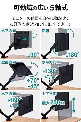 1732インチサイズのモニターに対応するガススプリング式のデュアルモニターアームです。