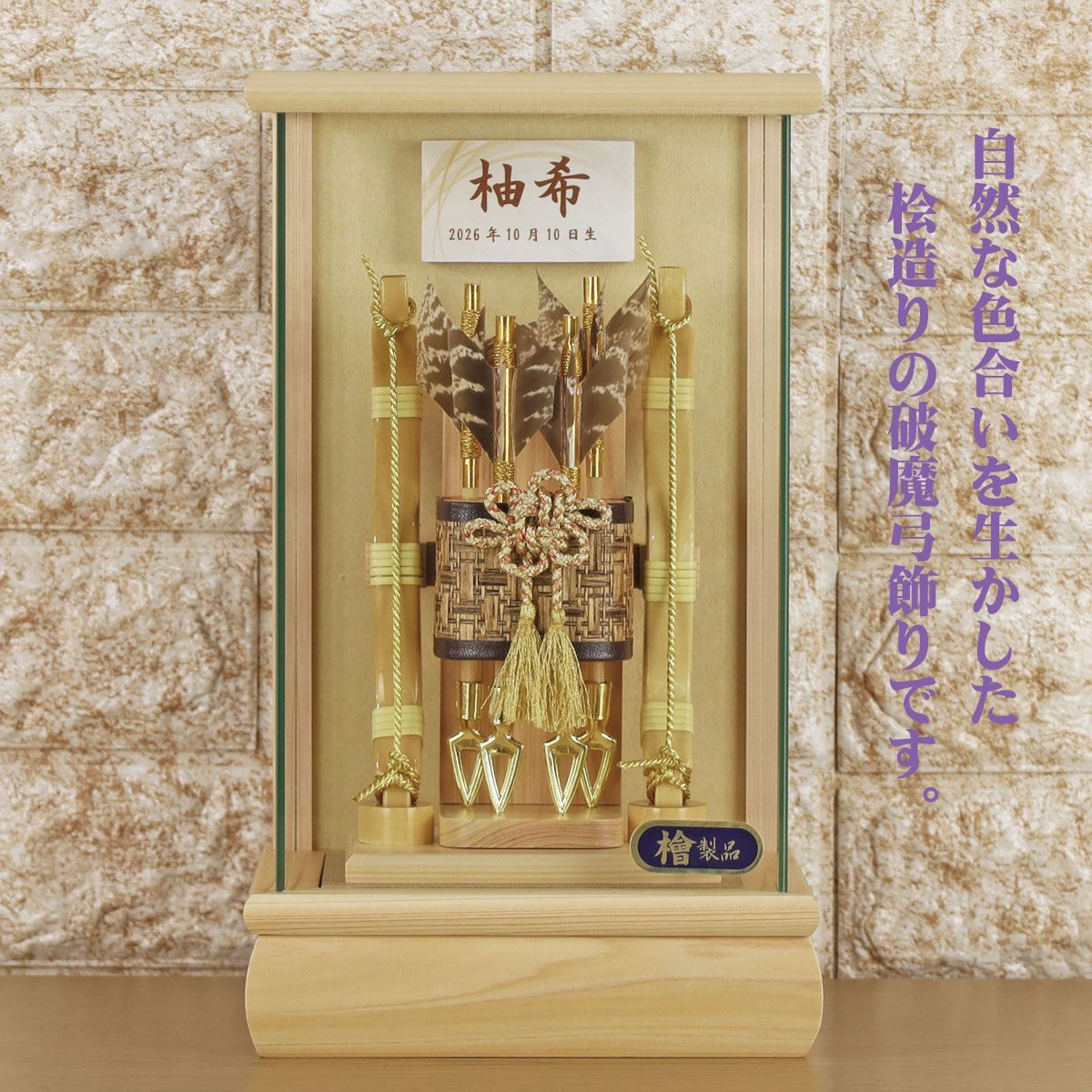 破魔弓 初正月 破魔矢 ケース入り 6号 総桧 飾り ガラス ケース 入り FUKUR 8 226 コンパクト おしゃれ 男の子 ミニサイズ 総檜