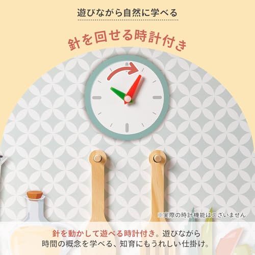 【本格的なお料理ごっこ】つまみを回すと「カチカチ」と音が鳴るから、リアルなコンロつまみの雰囲気でお料理体験が楽しめます。シンクは水を貯める事がが出来、付属の食材ピースを洗ったり、お皿を洗って、イメージトレーニングをすることが出来ます!