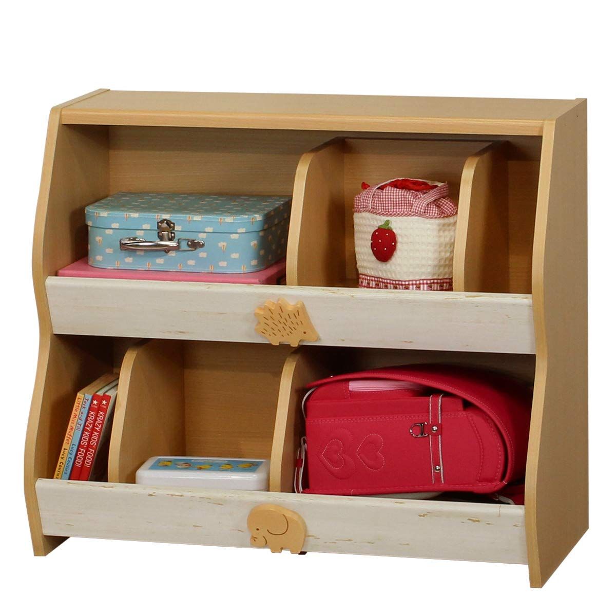 白井産業 おもちゃ箱 ラック 子供 収納 片付け 木製 リビングに置ける北欧テイスト かわいい ハリネズミとゾウのオーナメント ナチュラルブラウン 幅81 5 高さ69 6 奥行38 9 cm LAK 7080 R ランドキッズ