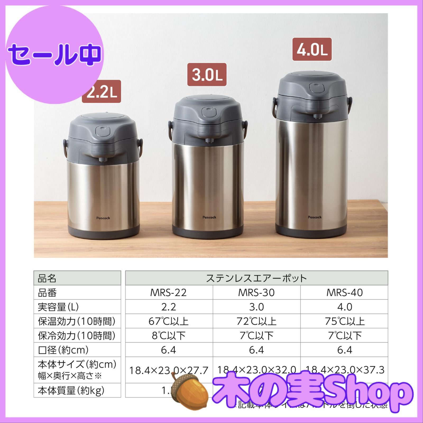 大安売り ピー The peacock ピーコック 保冷ポット ステンレス エアーポット 3リットル 保温 保冷 広口 ポット 卓上 保温ポット 3 L ステンレスエアーポット MRS 30 XA