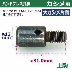 ハンドプレス 打駒 大カシメ 片面 9 mm 大カシメ片面用 上駒下駒 入 上駒 幅13 高31 0 軸幅8 下駒 幅22 高30 3 軸幅19 鉄製 焼き加工 大きいカシメ 片面カシメ 大 頭 ウチコマ ハンドプレ