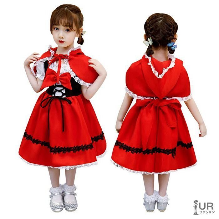 衣装 子供 女の子 コスプレ 仮装 コスチューム キッズ 子供ドレス 赤ずきん ケープ 子供服 ワンピース 童話 発表会 赤 パーティー ドレス 子供用 子ども 幼稚園 halloween 09