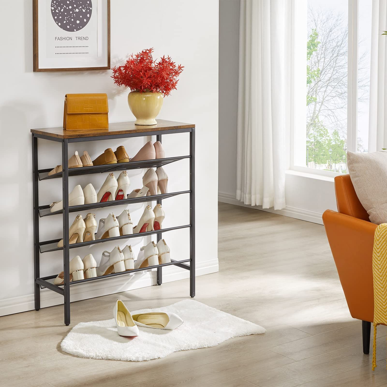 YMYNY シューズラック 5段 メッシュ棚調整可能 靴棚 下駄箱 省スペース オープンラック 16足用 大容量 通気 木製天板 サイドテーブル 靴収納 靴置き 靴箱 玄関テーブル W75.5×D30×H87cm 茶色 JPHTMJ083H
