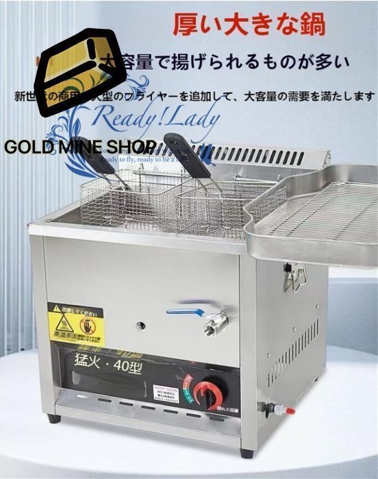 フライヤー 業務用 大型 ガスフライヤー 卓上 垂直 ステンレス鋼 揚げバスケット付き 厨房機器 揚げ物 簡単に掃除できデスクトップフライヤー LPガス用 68 48 5 54 cm
