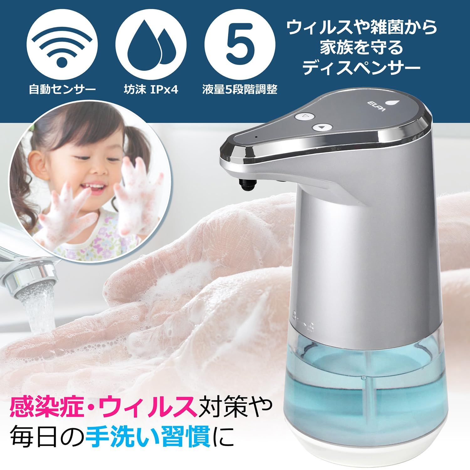エルパ ELPA オートディスペンサー 液体タイプ シルバー H 20 2 W 16 7 D 12 mm ディスペンサー ESD 06 ES 液タイプ