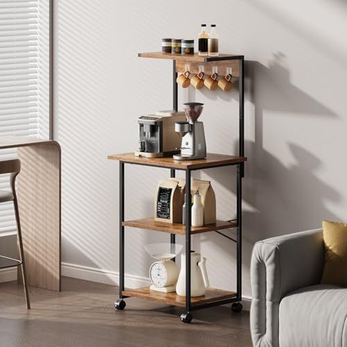 レンジラック キッチンラック レンジ台 キャスター付き 高さ調整可動棚 レンジボード キッチン棚 電子レンジ ラック キッチン 収納 トースターラック 幅50 奥行35 高さ132 cm 四つフック ビンテージe 5 a 4 b 5440