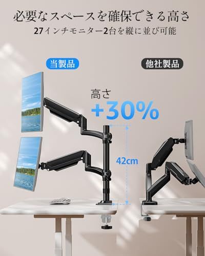 MOUNTUP デュアルモニタアーム 2画面 ディスプレイアーム ガススプリング 16?32インチ対応 縦並び 耐荷重2?10 kg VESA 75*75 100*100 グロメット式 クランプ式 ポール アーム付き 角度調整 MU 6016 B-0 52038 a 9