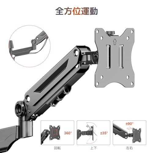 モニターアーム 壁掛け 42インチ対応 耐荷重12? ガス圧式 シングル 液晶ディスプレイアーム 360度回転 VESA 75 x 100 5 d 50 afa 0
