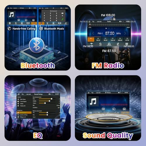 FMラジオ、Bluetooth、EQ、多機能USB:1DINタッチスクリーンカーステレオには、従来のラジオ視聴用FMチューナーを内蔵。Bluetooth接続によりデバイスからのワイヤレスオーディオストリーミングが可能。内蔵EQ(イコライザー)で音質設定を好みに合わせてカスタマイズでき、パーソナライズされたオーディオ体験を実現。ロスレス音質を提供し、オーディオの細部まで忠実に再現、高忠実度のリスニング体験を提供します