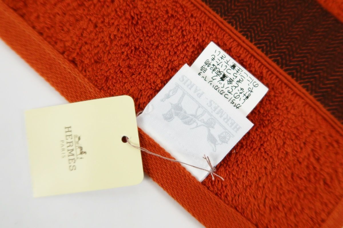 【新品・未使用】HERMES エルメス ゲストタオル ハンドタオル 約97×52㎝ オレンジ系 綿100% ブランド小物【PD82】