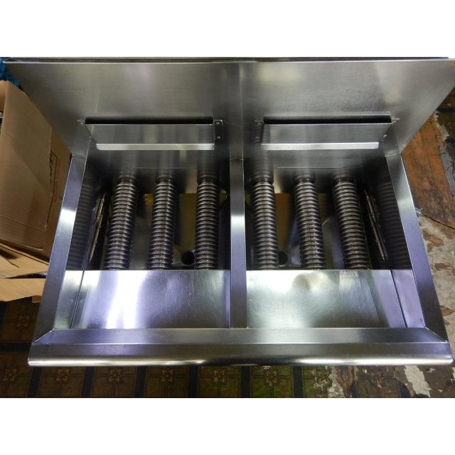 (代引不可)2016年製 タニコー LP ガス 2槽 フライヤー TGFL-87CW 18L×2 W87D60H80(+36)cm プロパン 70kg ホース接続×2 揚面積W383×D440mm 商品は新品です。 多少の傷汚れあります。 状態画像にて判断願います。 油を張って動作確認済です。 圧電点火、サーモ動作問題ありませんでした。 もともと都市ガス用だったものをLPガス用に変換してあります。 ガス接続 サイズ 9.5mmゴムホース接続×2 よろしくお願いします。 送料 大型宅配便 C 代引不可