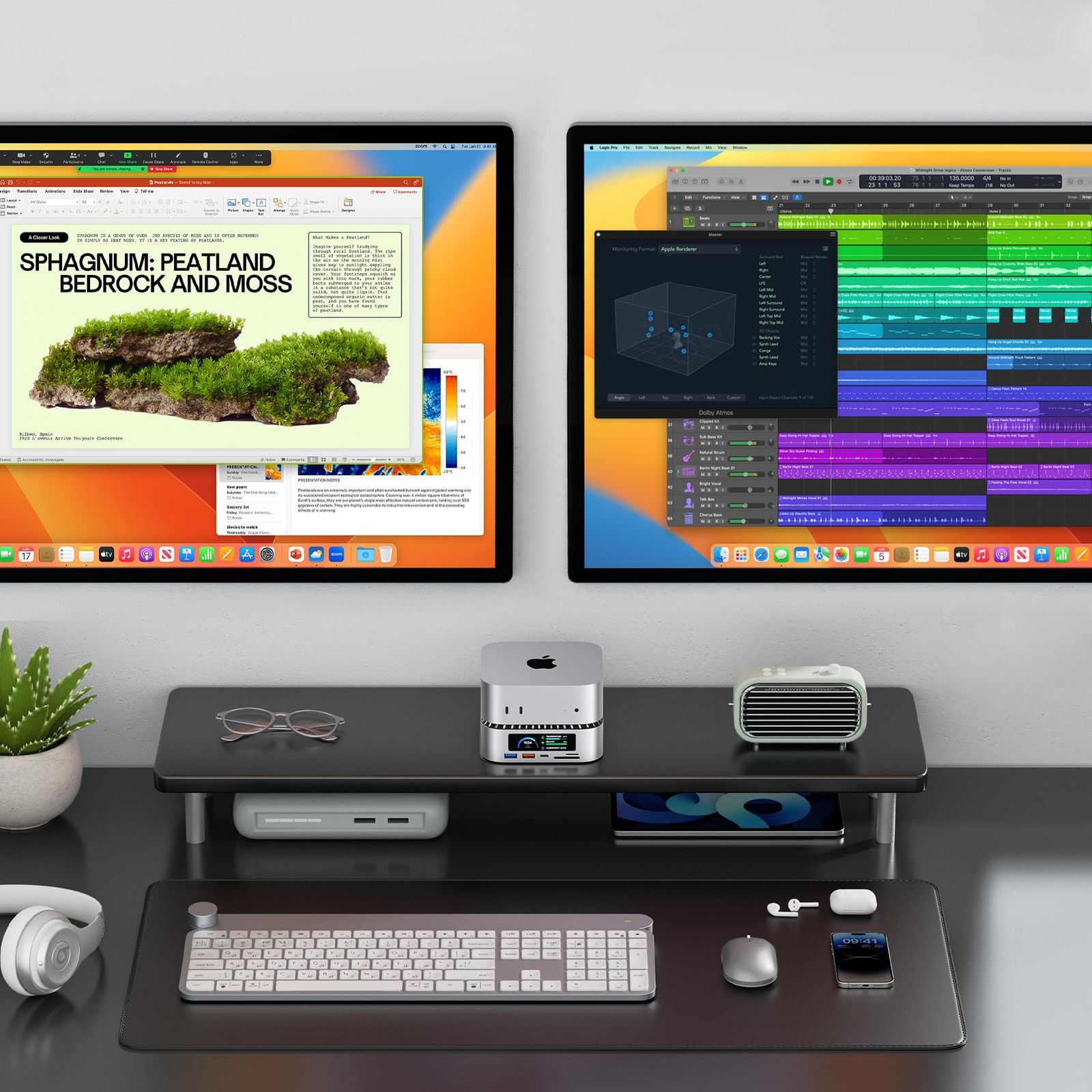 【高級感あるアルミ筐体・デザイン一体化】 Mac miniと同色のアルミニウム合金を採用し、シームレスにフィット。水平設置デザインで省スペースを実現し、Mac mini本体の上に設置しても熱をこもらせない構造。スタイリッシュでありながら機能性にも優れた設計です。
