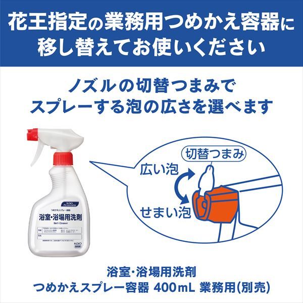 〔浴室用洗剤〕スピード清掃。泡が汚れをグイグイ取り込みサッと消える。●菌由来の黒カビ・ヌメリを予防(*1)。●除菌(*2)・ウイルス除去(*3)・防カビ・消臭。●湯アカも石けんカスもスッキリ。●中性。*1既に発生している汚れは除去してからお使いください。*2すべての菌を除菌するわけではありません。*3すべてのウイルスを除去するわけではありません。エンベロープタイプのウイルス1種で効果を検証。