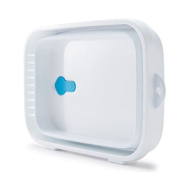 場所を取らないタテ置きができる洗い桶。使用後は折りたたんでコンパクトに収納。