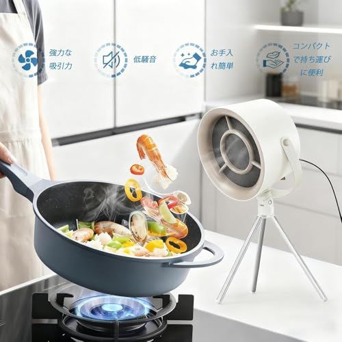 迅速に発送 卓上換気扇 焼肉用 煙吸引機 3段階風量 角度調整 三脚スタンド 活性炭フィルター計 本体装着1 予備11 分解洗浄OK 小型 軽量 持ち運び便利 卓上レンジフード 家庭用 室内焼肉 キャンプ対応 ミルキーホワイト 0 ef 20911