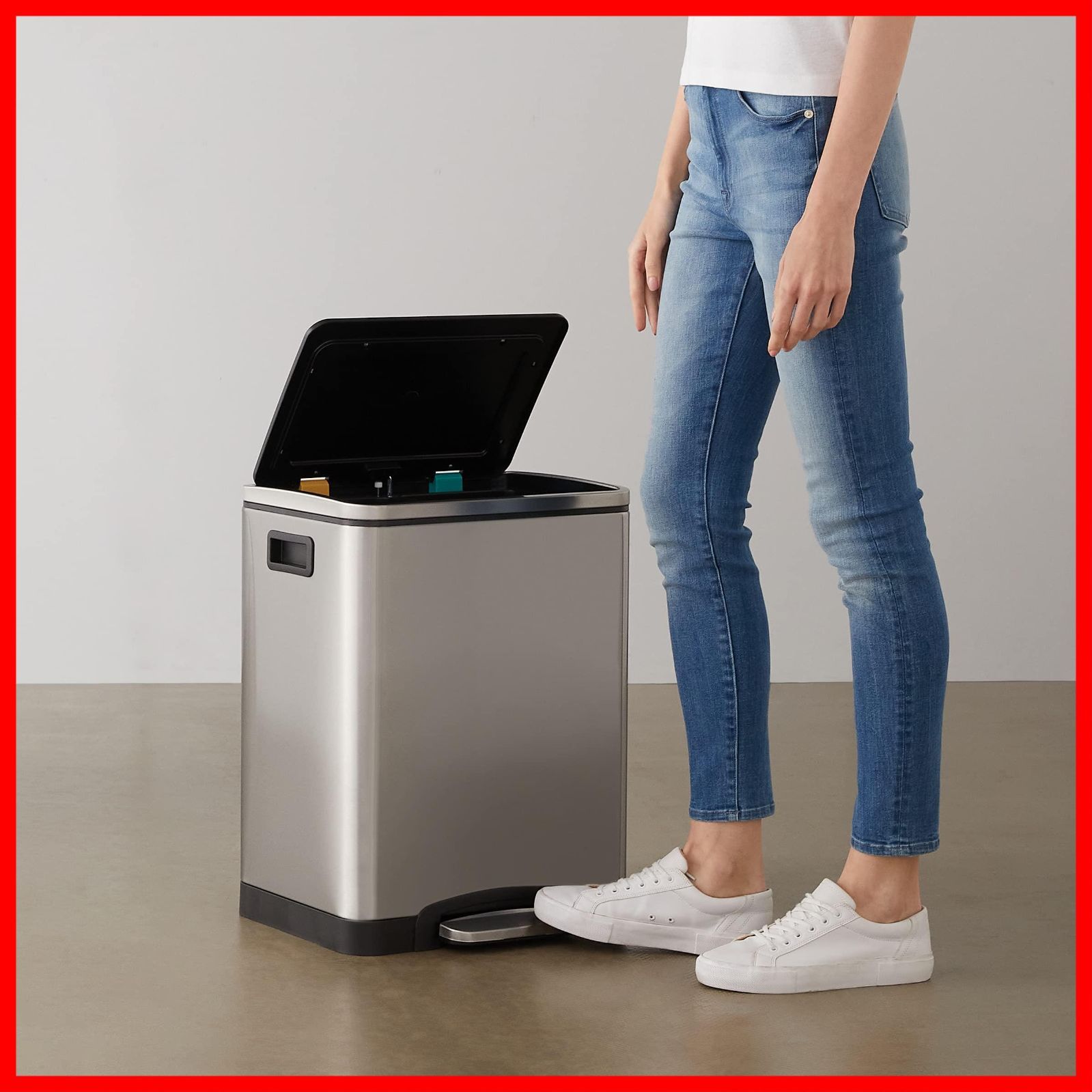 内側15L容器2個と手動フットレバー付きのステンレス製ゴミ箱