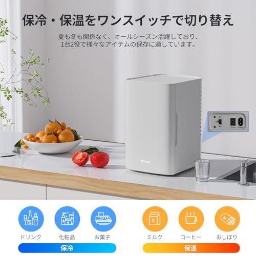 【保温・保冷両用・オールシーズン使用可能】最低-2まで冷却、最高60まで保温 、保冷・保温をワンスイッチで簡単に切り替え、夏や冬にもかかわらず、一年中使用できます!小型冷蔵庫の保冷・保温機能によって、ミルク、ドリンクや化粧品など様々なアイテムを保存可能です。