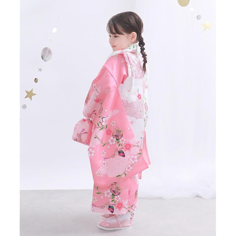 KYOETSU キョウエツ 自宅で簡単着付け 七五三 3歳 女の子 着物 セパレート 二部式 セット 被布 小物 フルセット 753 4点セット 3 桃色桜鞠 90 100 cm 1
