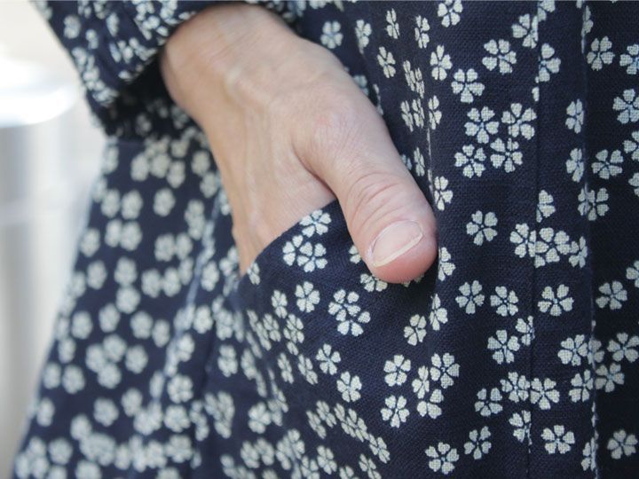 藍染め風の生地でおしゃれな割烹着を作り