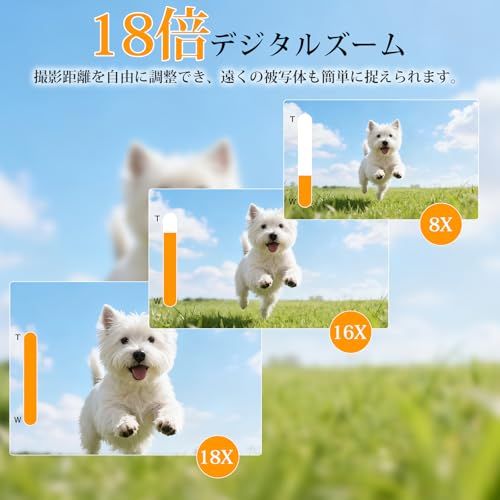 【18倍デジタルズーム&オートフォーカス誰でも簡単操作】 18倍デジタルズームで、遠くの被写体もしっかり撮影。 オートフォーカス対応のため、シャッターを押すだけで