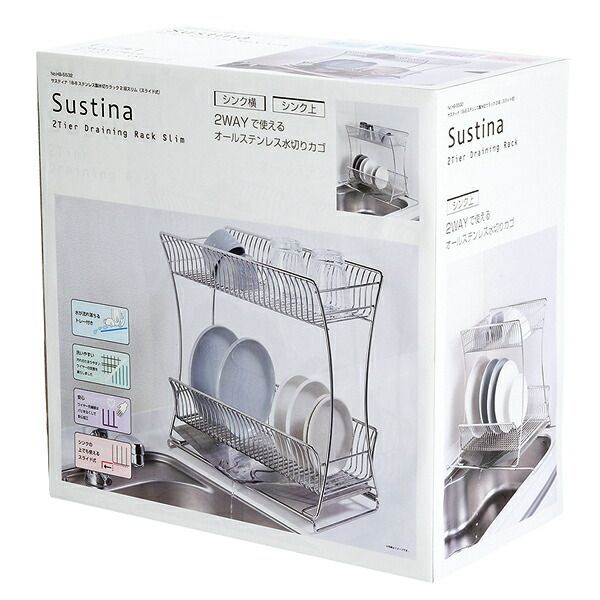 サスティナ 18 8ステンレス製水切りラック2段スリム スライド式
